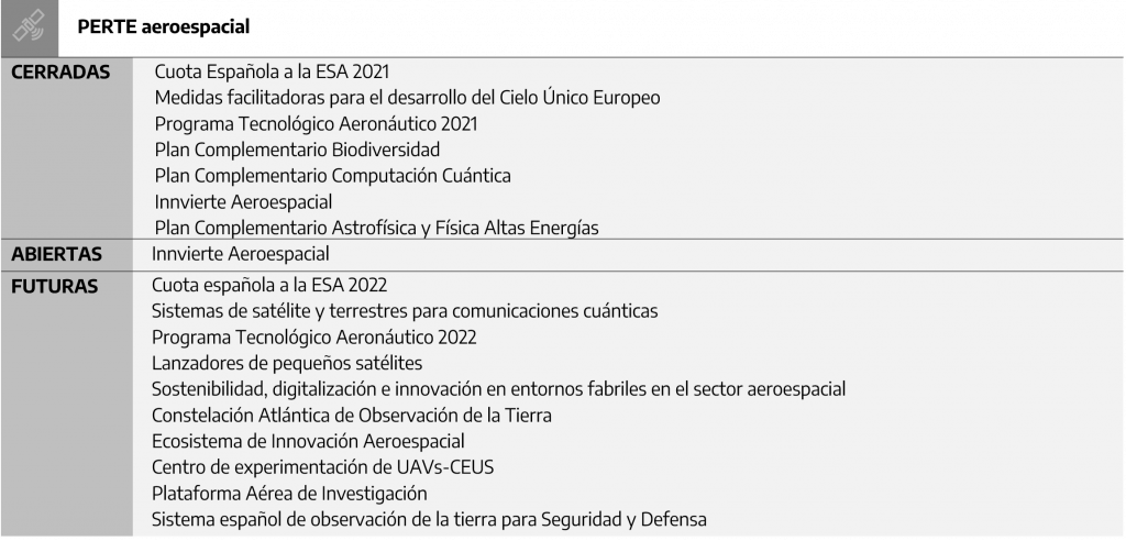 Ya con velocidad de crucero, el 22 de marzo se aprobó el PERTE Aeroespacial, el cual engloba un conjunto de actuaciones orientadas a mejorar y generar capacidades tecnológicas e industriales en el sector aeroespacial, así como avanzar en un mejor posicionamiento estratégico de la industria radicada en España en campos clave del sector aeronáutico y espacial. Este PERTE prevé movilizar cerca de 4.533 millones de euros entre 2021 y 2025, con una contribución pública de 2.193 millones de euros y una inversión privada de cerca de 2.340 millones.